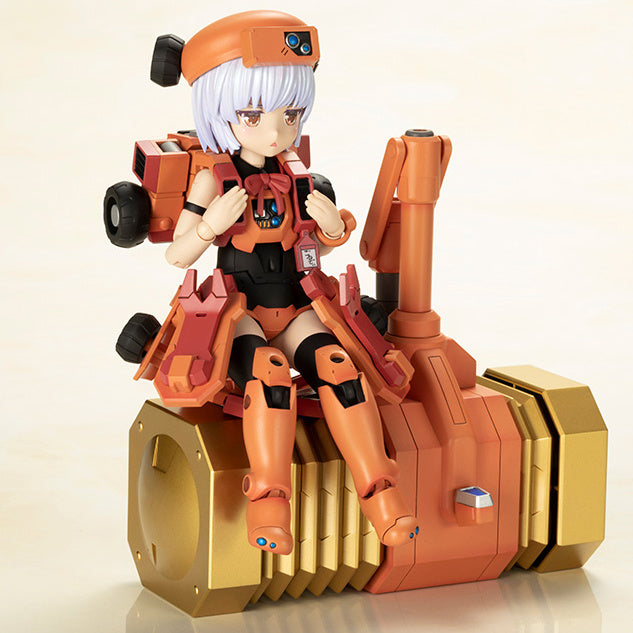 She's small, but mighty! Based on illustrations by Eiji Komatsu, the Goldymarg and Stealth Gao II from "The King of Braves Gao Gai Gar" have now become "Cross Frame Girl" figure model kits from Kotobukiya! Goldymarg can transform into the Goldion Hammer and the Goldie Tank, too! She can also ride on the Stealth Gao II in its vehicle form. You can also display Goldymarg as a cute girl if you'd prefer; she can also be combined with Cross Frame Girl GaoGaiGar to recreate Star GaoGaiGar with the Goldion Hammer! Combine Goldymarg with the Star GaoGaiGar, by using the phantom ring of the Ultech engine installed on both wing tips of the Stealth Gao II, to reproduce Broken Phantom, an evolved version of the Broken Magnum, and Protect Wall, an evolved version of Protect Shade. A Gatling Driver is also included. Nail-like parts for reproducing Hammer Hell and Hammer Heaven are also included, allowing you to reproduce special moves! Three interchangeable painted faces are included, and decals for her eyes and markings are included; four pairs of interchangeable hands are also included, as is a mechanical hand that can hold the mighty Goldion Hammer! Even better, she's equipped with 3mm-diameter ports, so she can use items from "Frame Arms Girl," "M.S.G"-series items, and "Frame Arms" weapons.