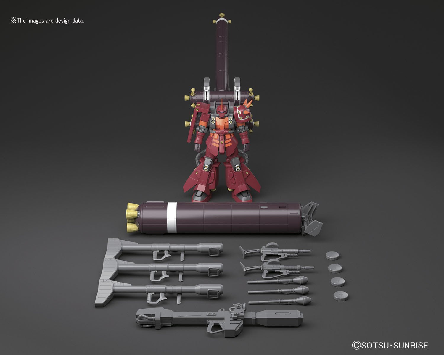 The cockpit hatch can be opened, and it's armed with the Beam Bazooka, three Giant Bazooka, two Zaku Machine Guns, two Heat Hawks, and three Sturm Fausts, and more! Don't miss out!